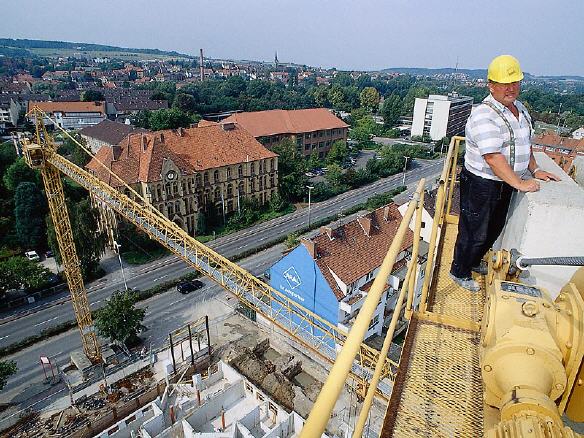 Kranführer steuern das Gerät allein, sprechen sich aber mit den beteiligten Bauleuten ab. Bei Arbeitsbeginn besprechen sie mit dem Polier oder dem Bauführer den Tagesablauf. Während der Arbeit verständigen sie sich mit den Mitarbeitenden über Funk oder per Handzeichen. Diese Anweisungen müssen genau sein und beim Kranführer richtig ankommen.(Zu Boden sowie in der Führerkabine)